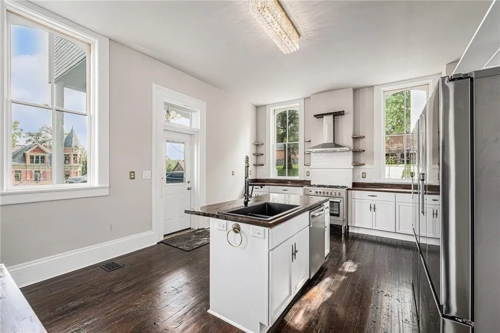 The restoration honors the home’s historic integrity while embracing modern comfort. Refinished original hardwood floors and newly restored original windows highlight the craftsmanship of the era, while the massive kitchen—equipped with brand-new stainless-steel appliances—adds a contemporary edge ideal for both daily living and large-scale entertaining.
