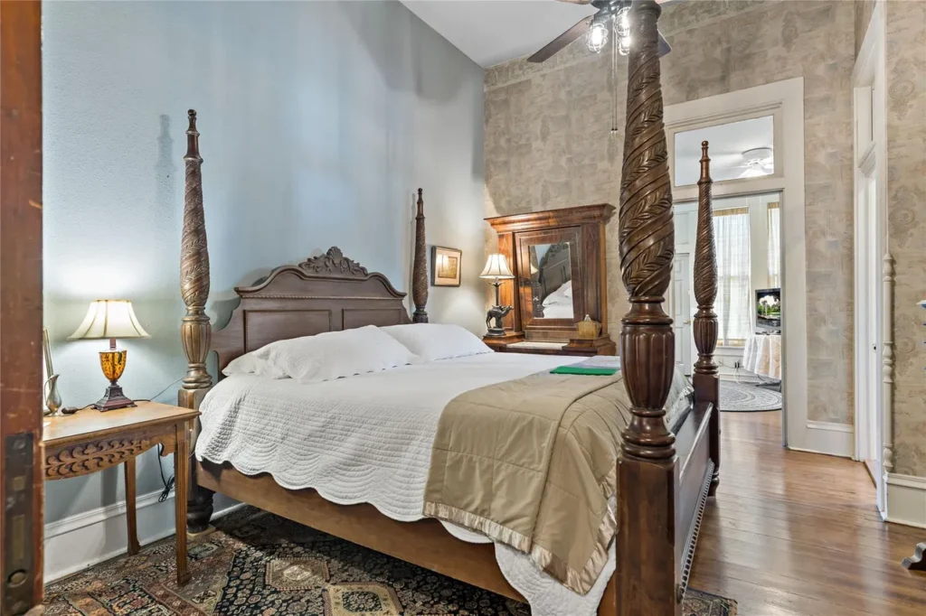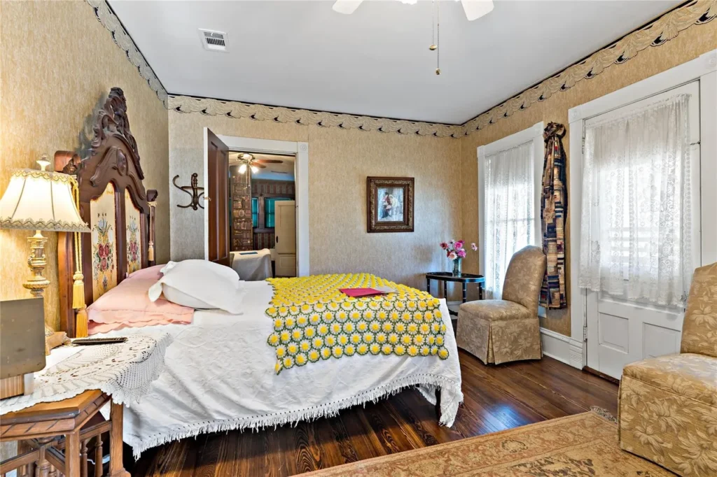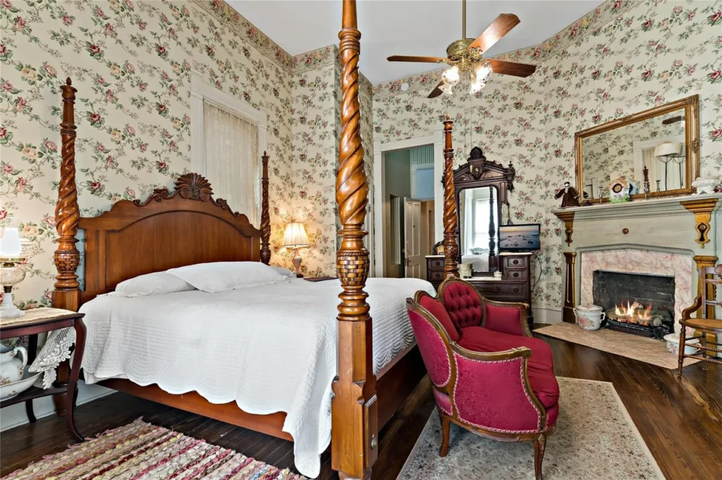 Guests enjoy original woodwork, vintage details, and spacious common areas steeped in Southern charm.