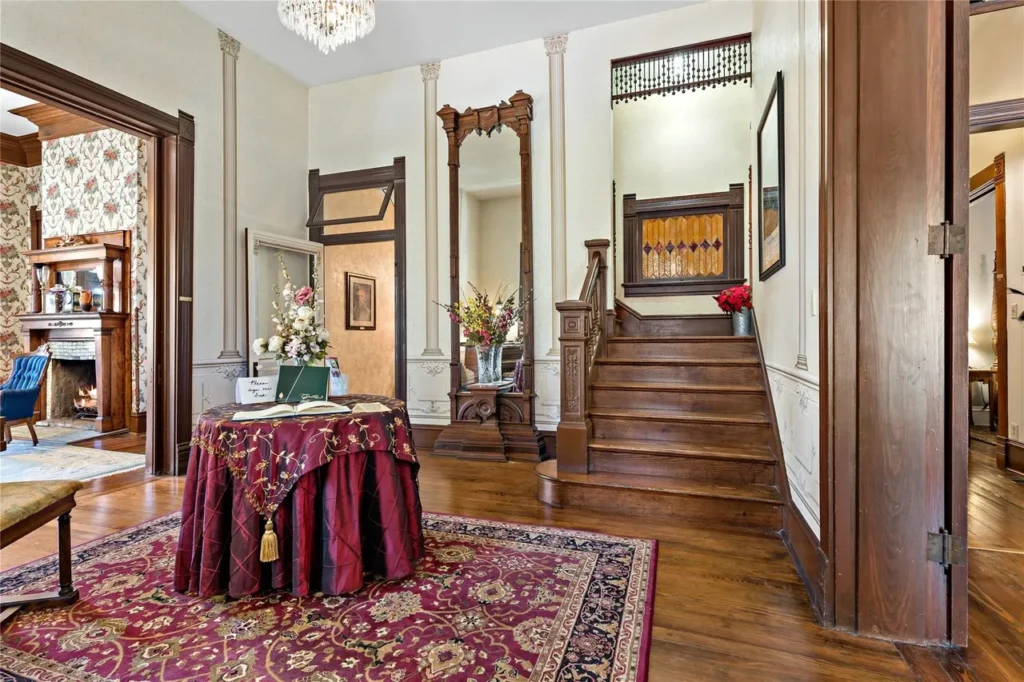 The 2,934 sq ft inn blends timeless architecture with modern comfort, offering 6 bedrooms and 7 bathrooms—ideal for hosting travelers or events.