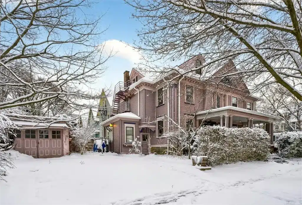 Built in 1890, this Victorian on Thayer Street is a substantial and flexible residence rooted in Rochester’s Historic Park Avenue neighborhood. Its wide front porch—overlooking a private front and side yard screened by mature hedges—sets the tone for a house designed to balance public presence with quiet retreat.