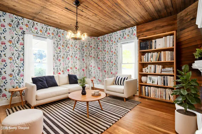 The exterior is a testament to the era’s craftsmanship, featuring classic Victorian lines and a gracious wraparound porch. Inside, the home is a treasure trove of original architectural details, including shiplap walls, wavy glass windows, and original coal fireplaces with their authentic covers and mantels intact. The grand entry opens to two parlors with working pocket doors, while the second story is bathed in natural light across three large bedrooms.