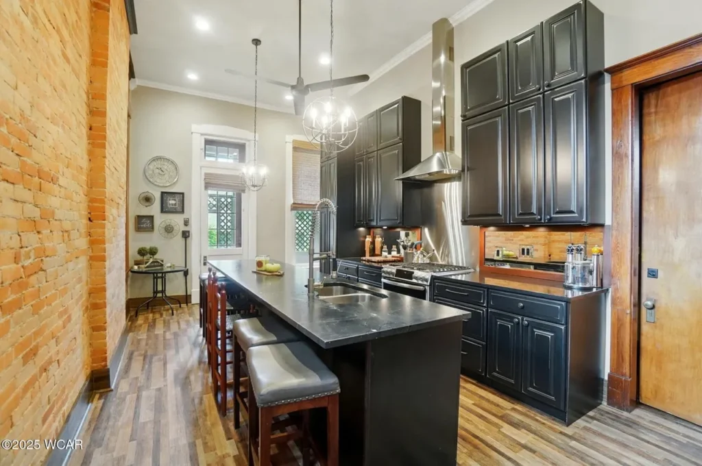 Sun-filled living spaces, original hardwoods, soaring ceilings, and handcrafted details tell the story of 1890 elegance—while the updated kitchen with exposed brick and a spacious butler’s pantry brings today’s conveniences to the heart of the home.