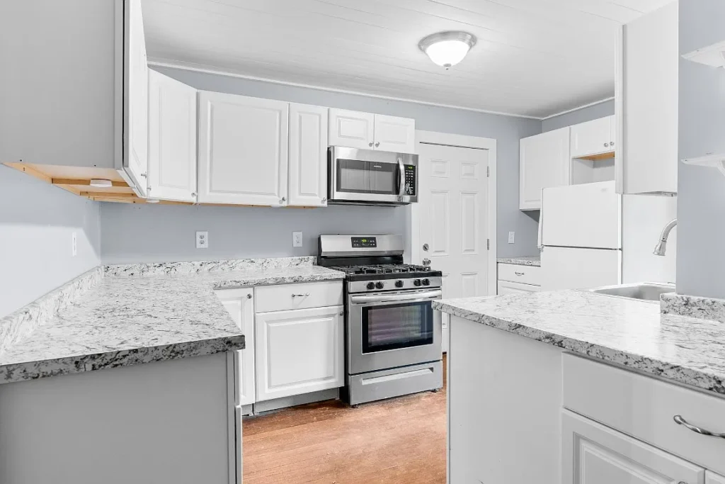 Every great farmhouse begins with a great kitchen — and this one has already received a complete renovation. Bright, functional, and welcoming, it’s the perfect place to gather around the table, share stories, or enjoy a meal after a day spent outdoors. The new kitchen features modern cabinetry, updated appliances, and finishes that blend seamlessly with the home’s rustic style.