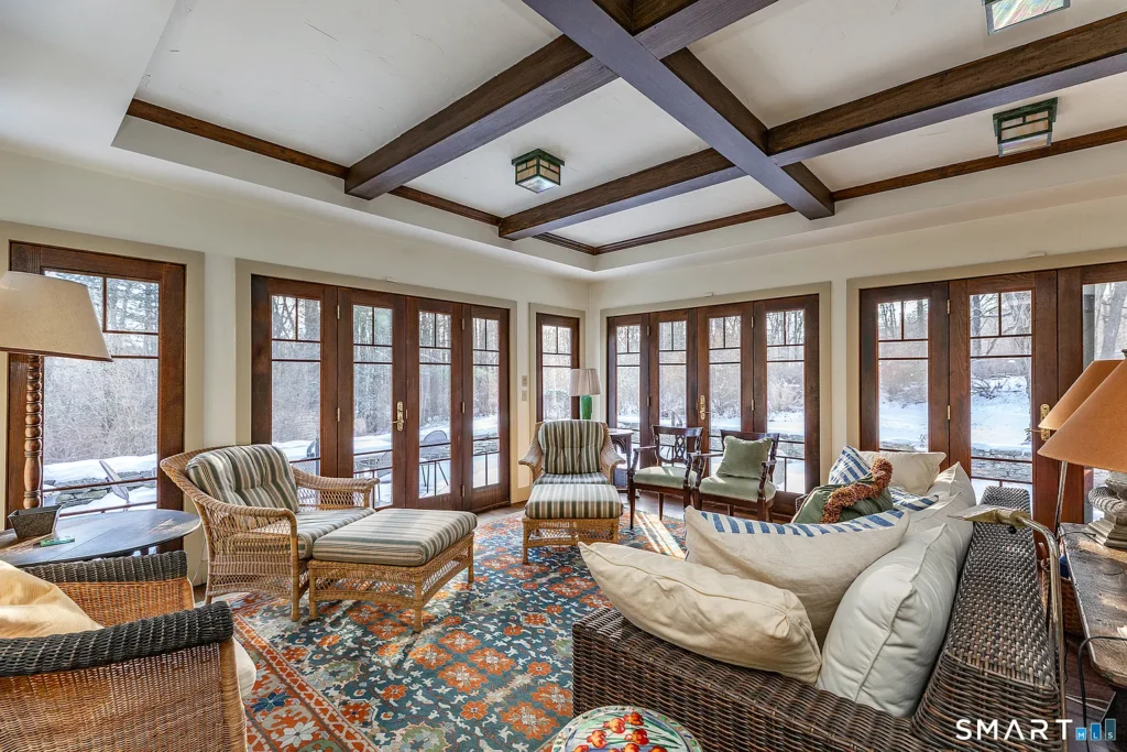 • Glass-Enclosed Sitting Room: Bathed in natural light, offering views of the manicured grounds year-round.