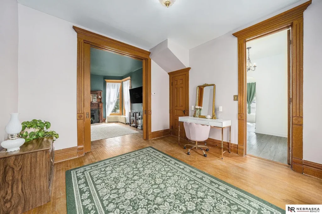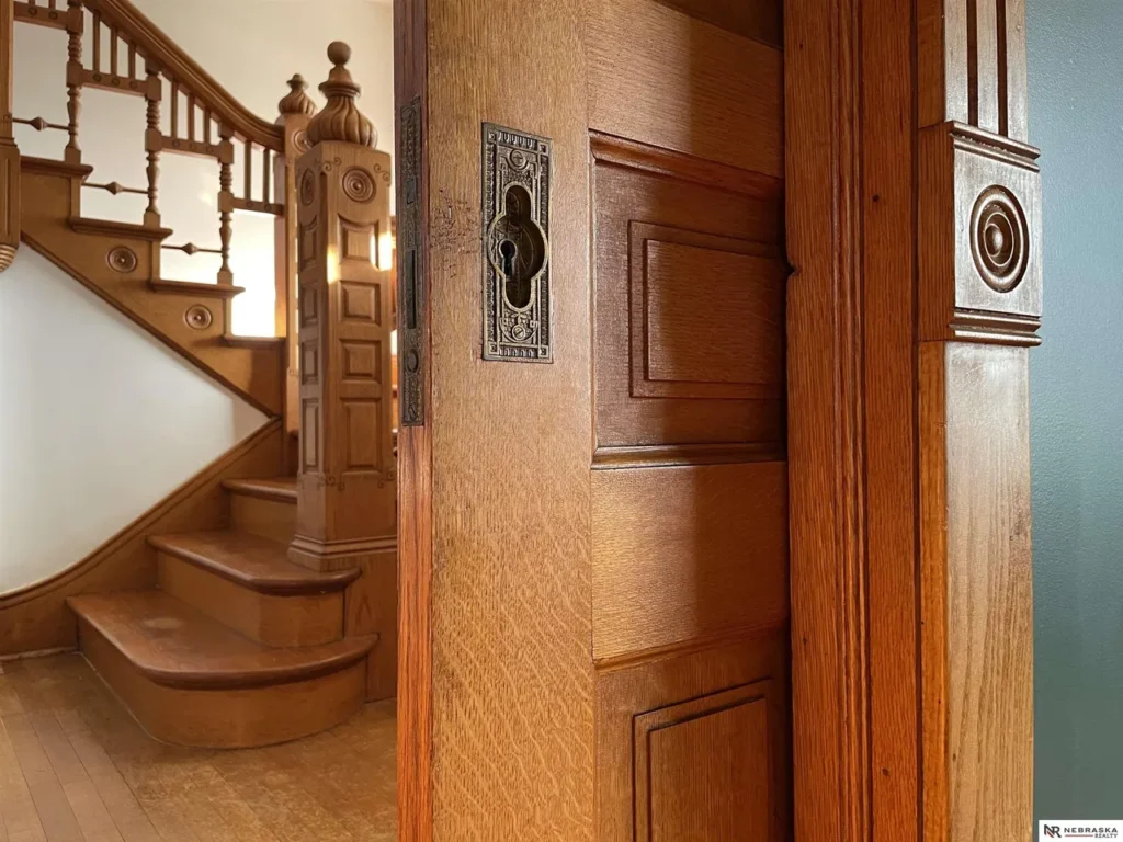 Exquisite Period Details: Marvel at the stunning oak woodwork, original interior trim, functional pocket doors, and a centerpiece fireplace that radiates historic dignity.
