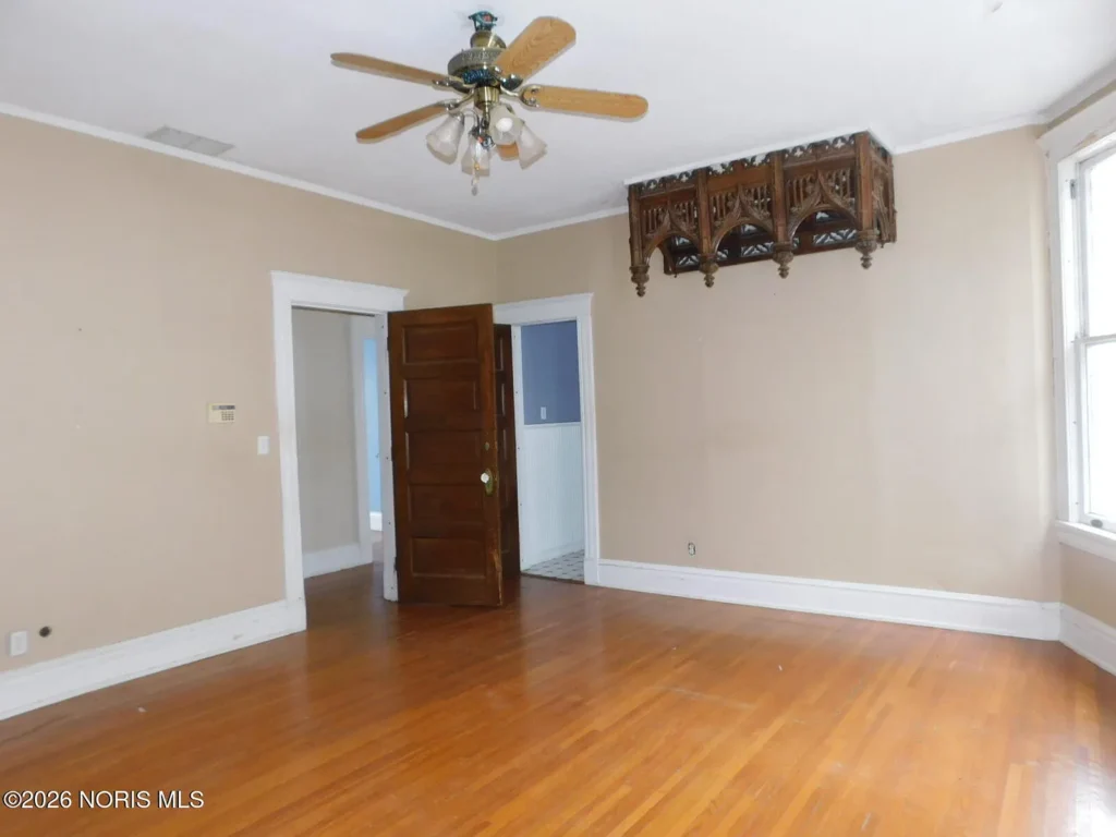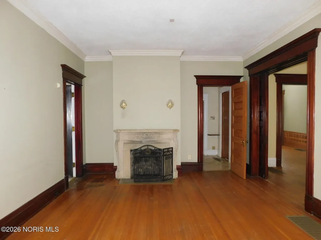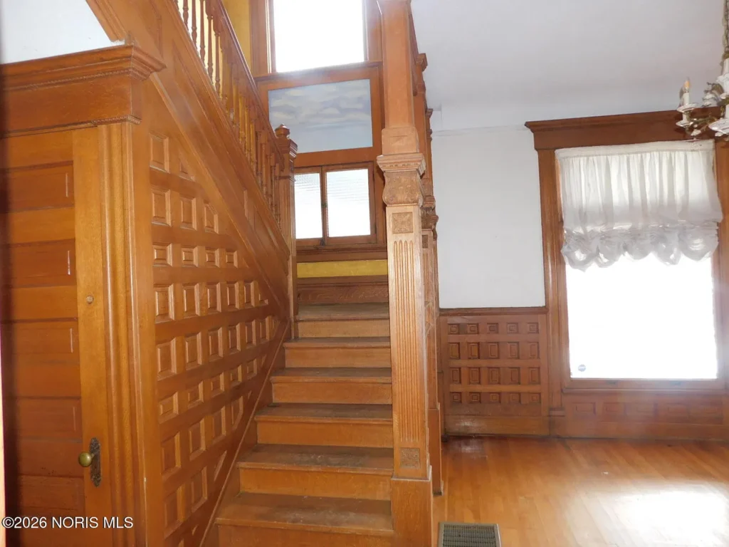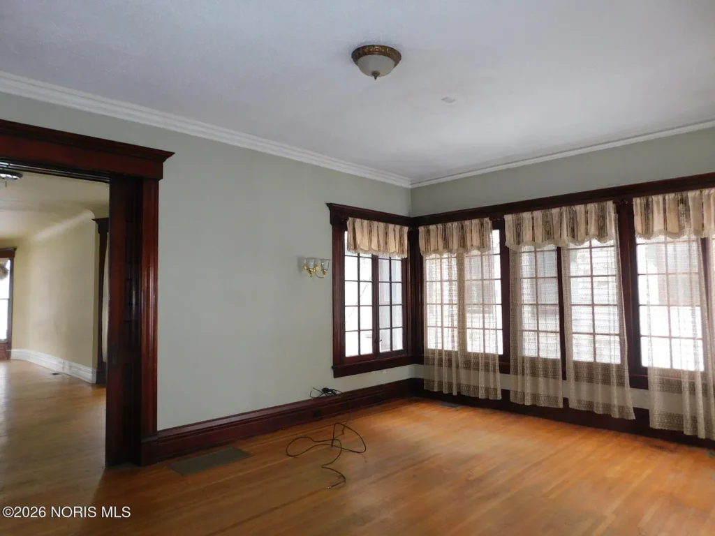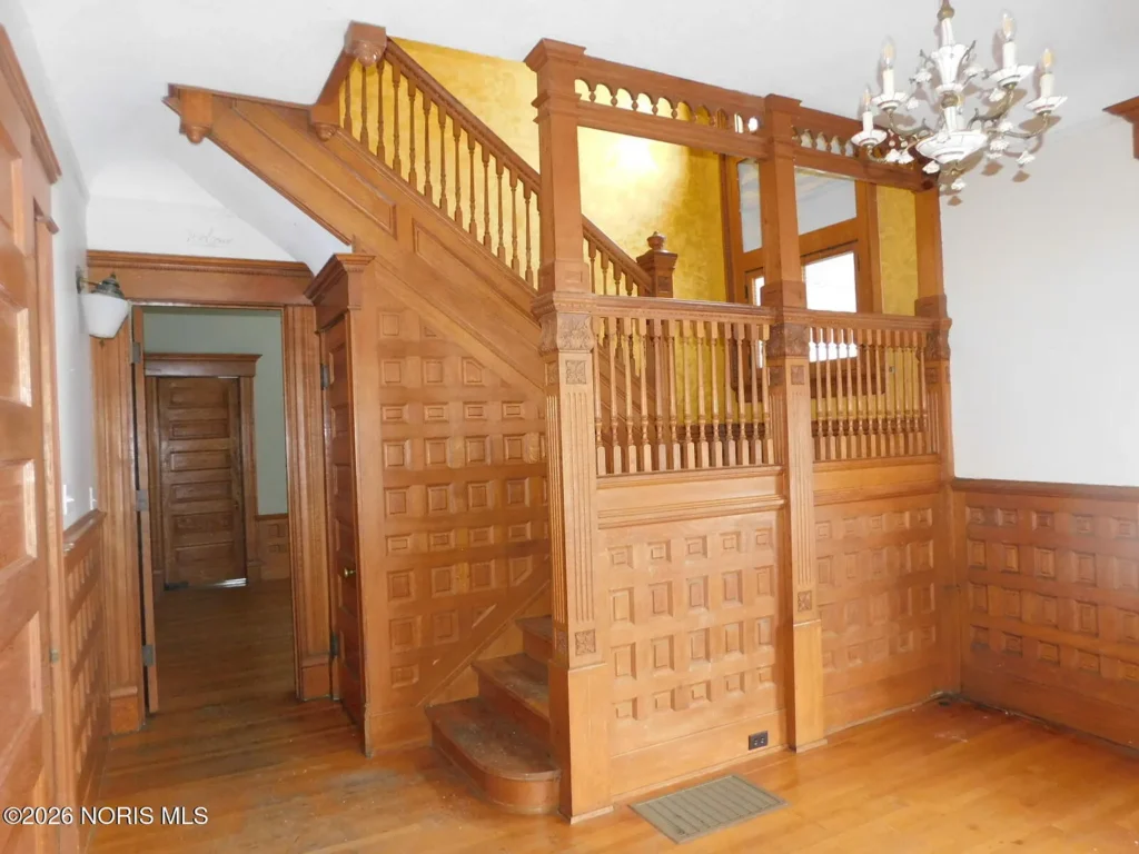 Located in Toledo’s renowned Old West End Historic District, this c. 1900 residence offers a substantial 3,624 square feet of living space defined by its high degree of material integrity. The exterior presents the classic neighborhood invitation: a generous wrap-around porch that serves as a transitional outdoor room, connecting the private residence to the historic streetscape.