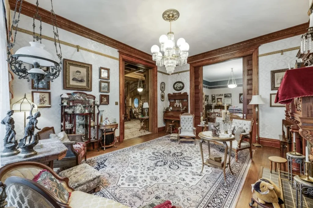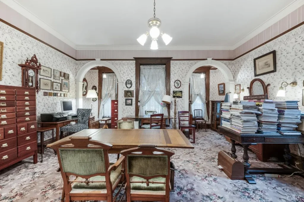 Enjoy soaring ceilings, original hardwood floors, ornate moldings, graceful pocket doors, and grand fireplaces in the expansive parlor, formal dining room, and library.