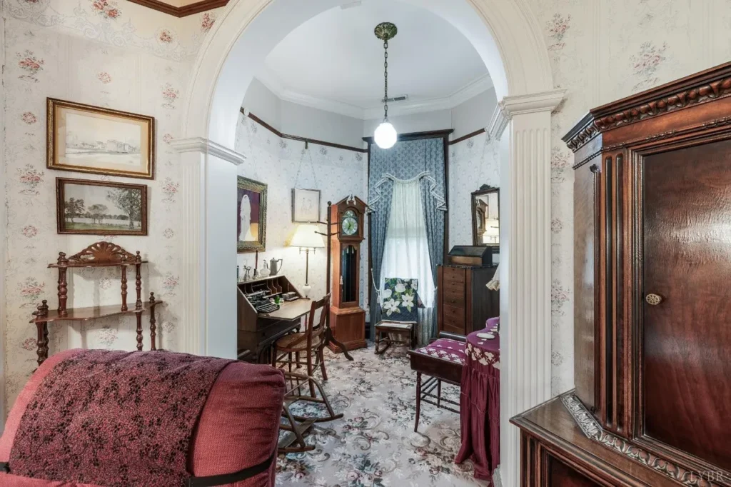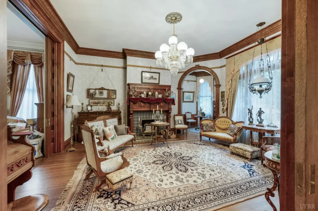 Located on a large corner lot (10,454 sq ft) with mature landscaping, the distinctive Queen Anne façade features decorative gables and detailed woodwork. Includes a charming trellised side porch, off-street parking, and a two-car garage with an extra lot. A rare opportunity to own a piece of Lynchburg history.