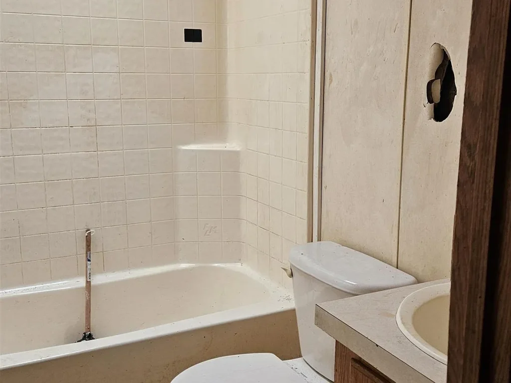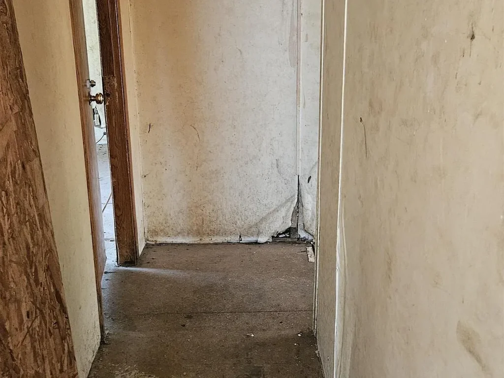 However, the home requires a full renovation due to significant water damage caused by a broken toilet that ran for days. As a result, portions of the drywall, subflooring, and flooring throughout the home will need to be replaced.