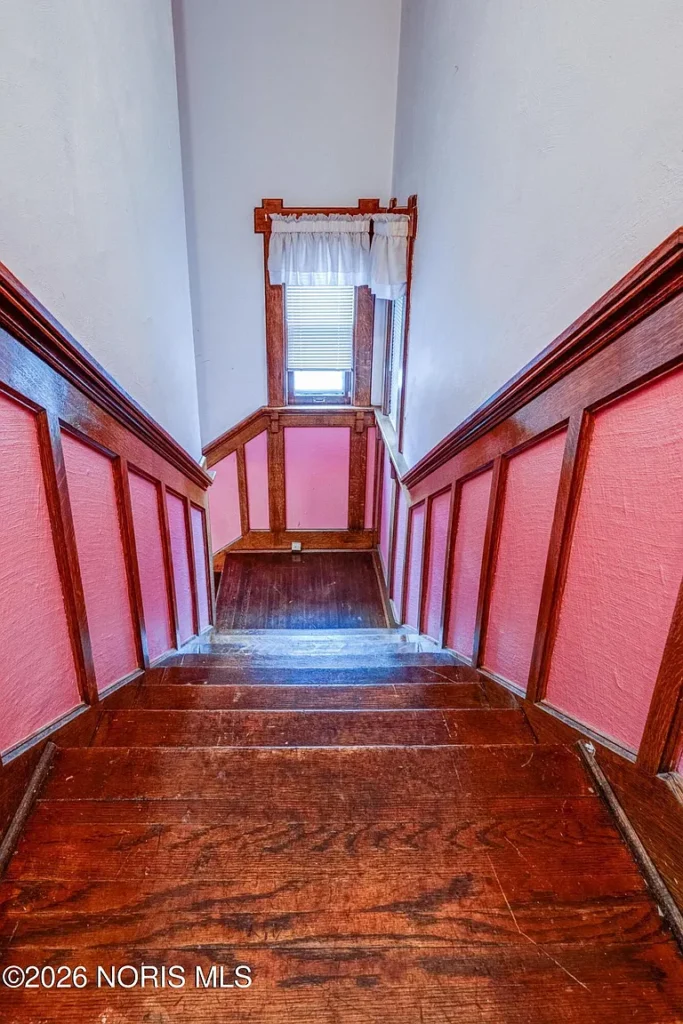 Located on the edge of Toledo’s “New Ostrich Towne” redevelopment, this 1909 residence offers a rare convergence of untouched interior fabric and burgeoning urban context. While the exterior presents a classic turn-of-the-century silhouette, the interior is a preservationist’s victory: the woodwork has largely escaped the white-paint trend of the last few decades.