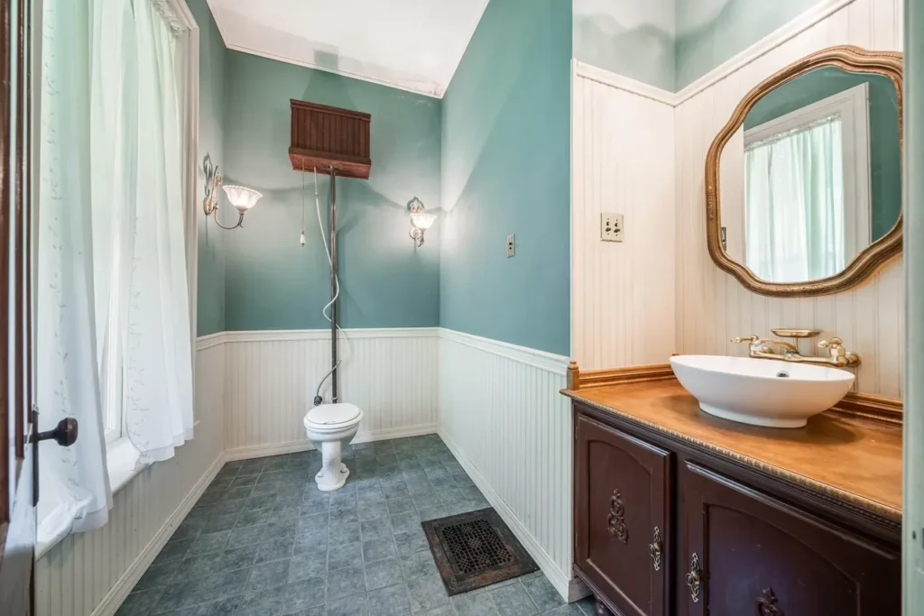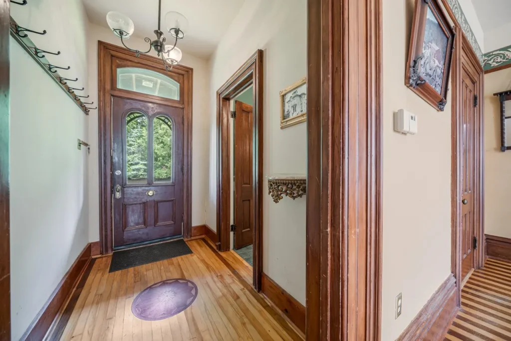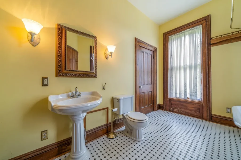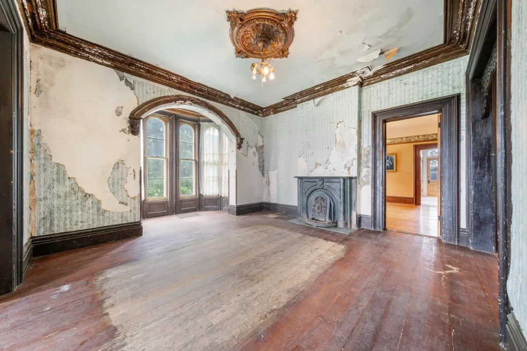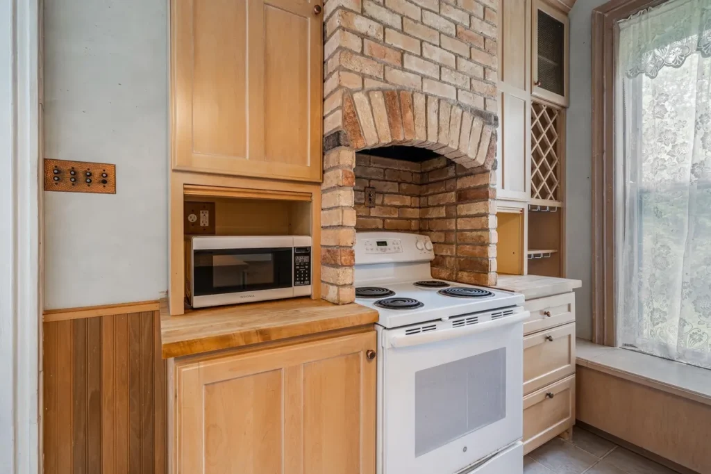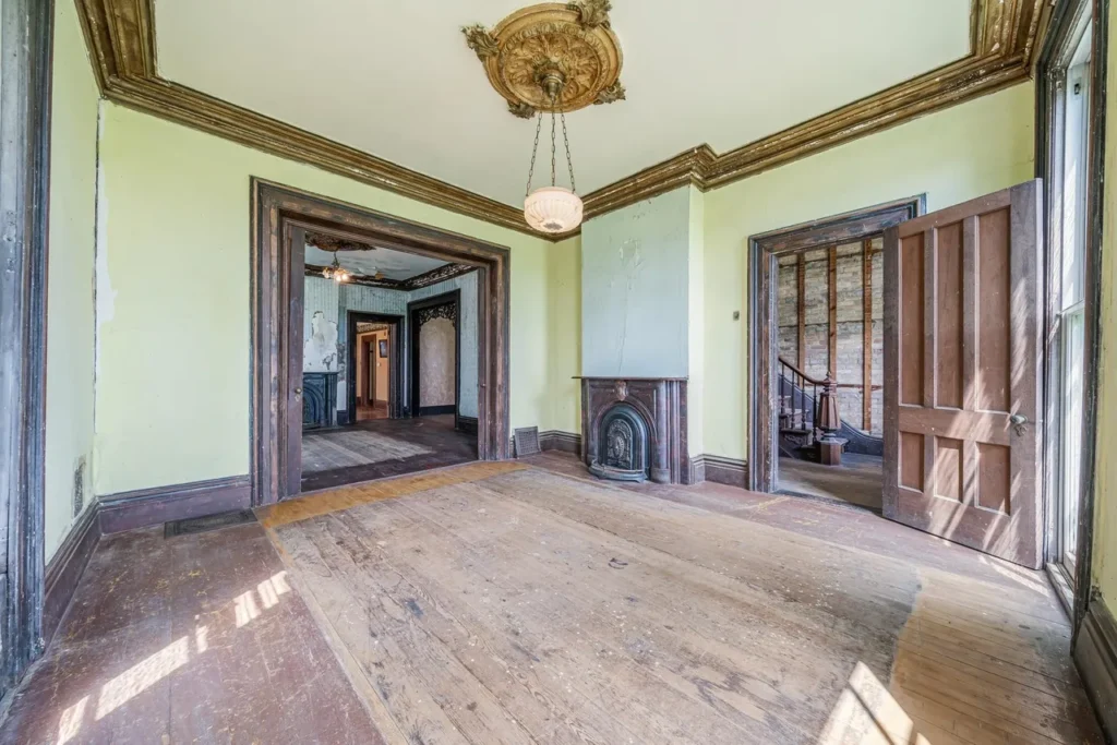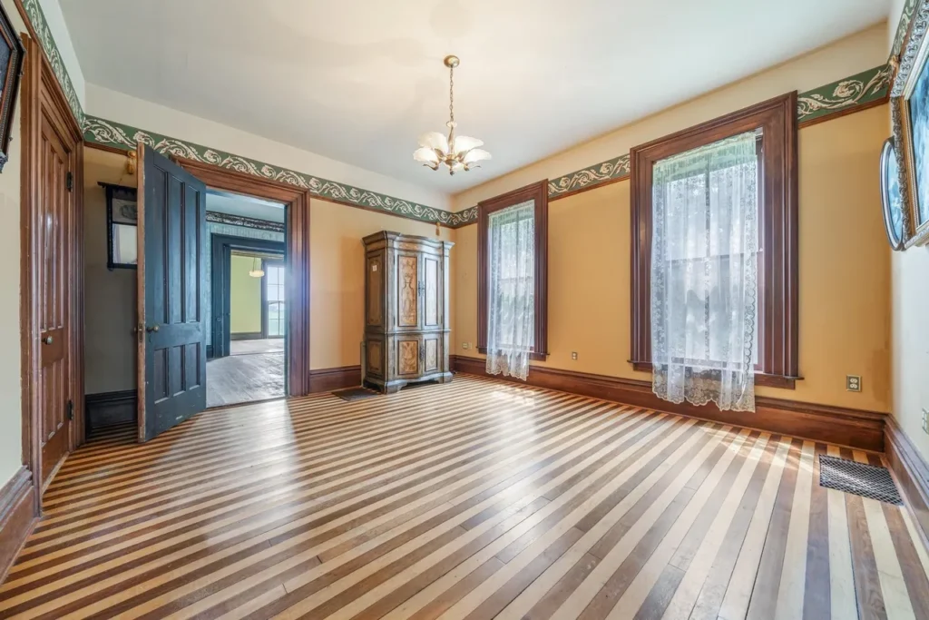 The recently renovated sections of the home showcase beautifully restored character, featuring original woodwork, high ceilings, and large windows that fill the space with natural light. The thoughtfully preserved details pay homage to the home’s rich history, including three wood-burning fireplaces (Source 1.6).