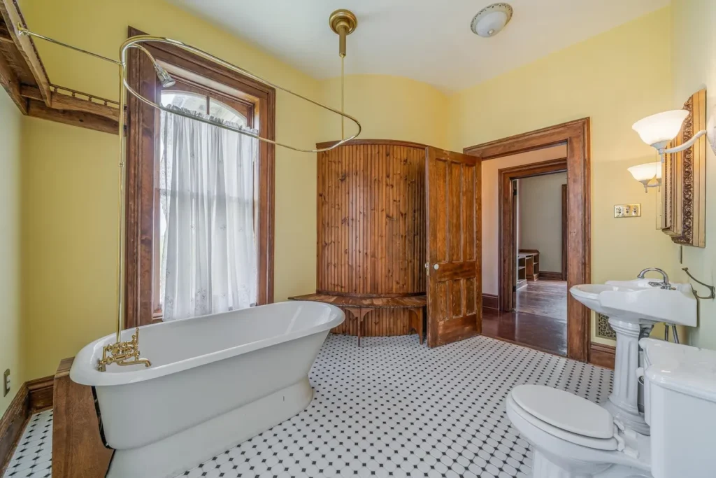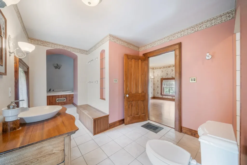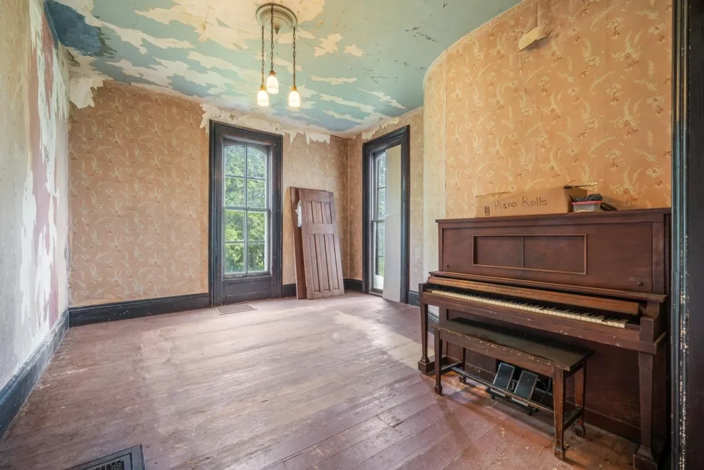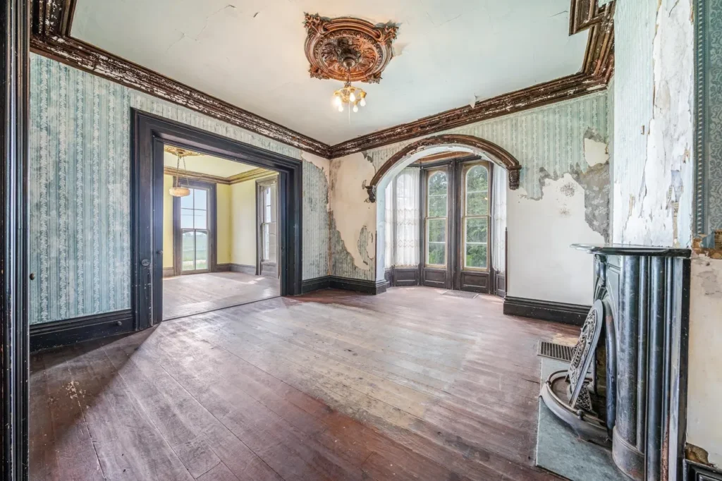 The recently renovated sections of the home showcase beautifully restored character, featuring original woodwork, high ceilings, and large windows that fill the space with natural light. The thoughtfully preserved details pay homage to the home’s rich history, including three wood-burning fireplaces (Source 1.6).