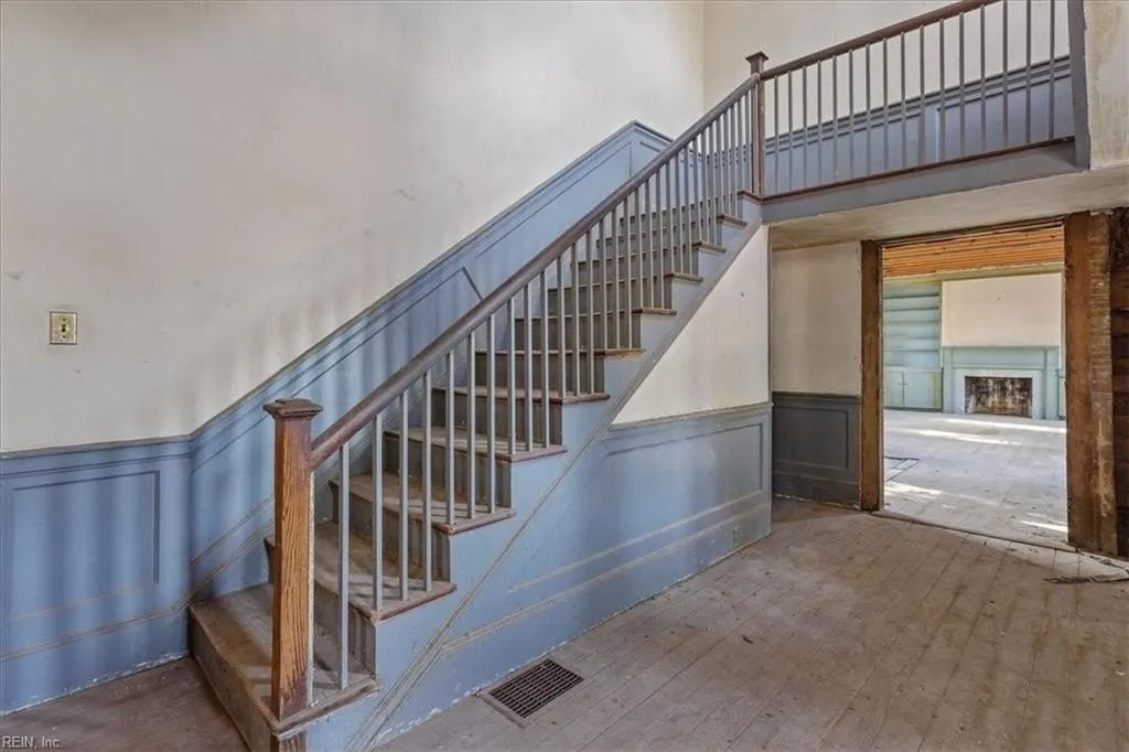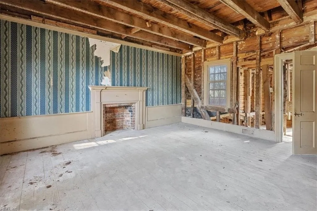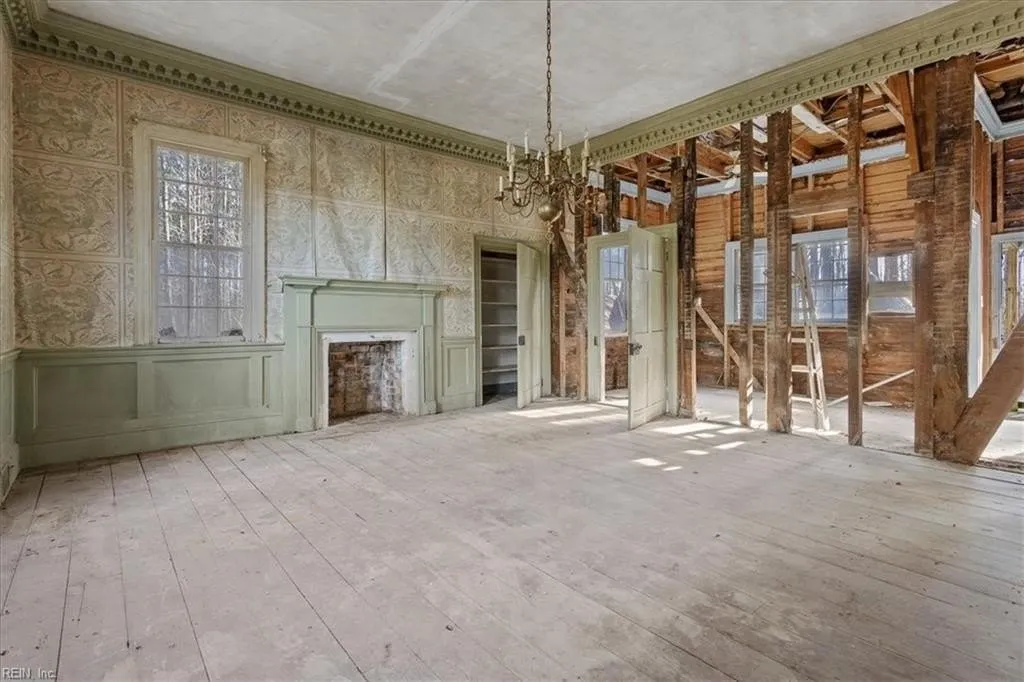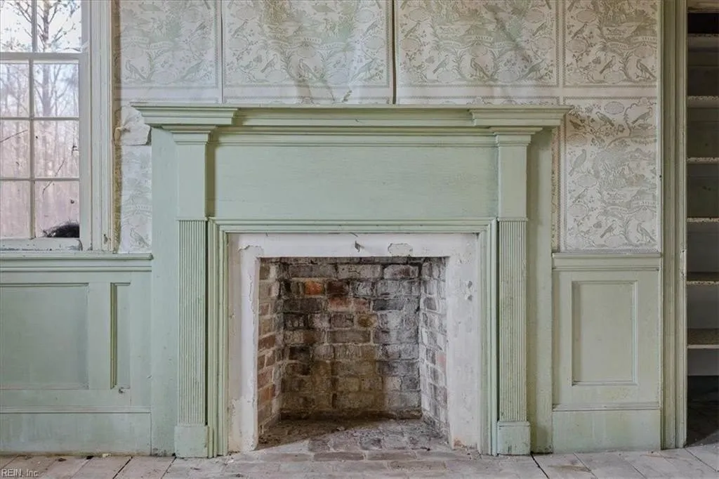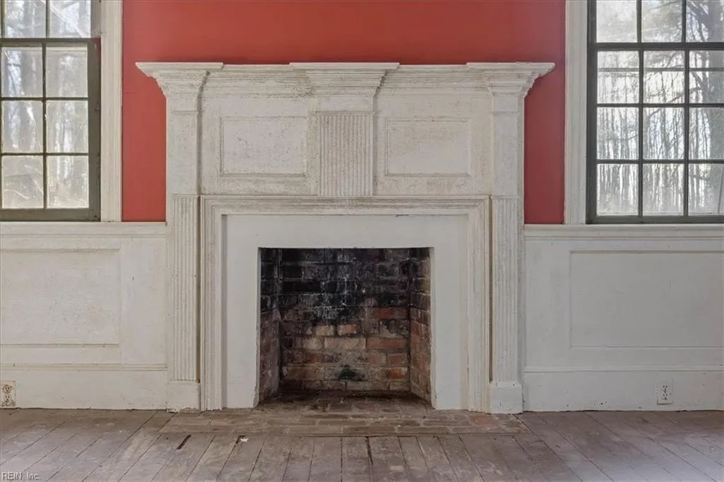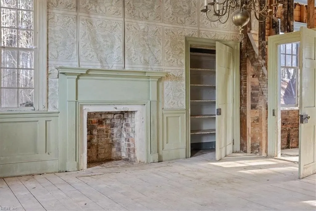 It’s set on 2.4 acres in Surry, Virginia, on land with roots dating back to the dowry for Pocahontas and John Rolfe! Much of the home is original, including most of the flooring, four fireplaces, wainscoting, and weatherboard.