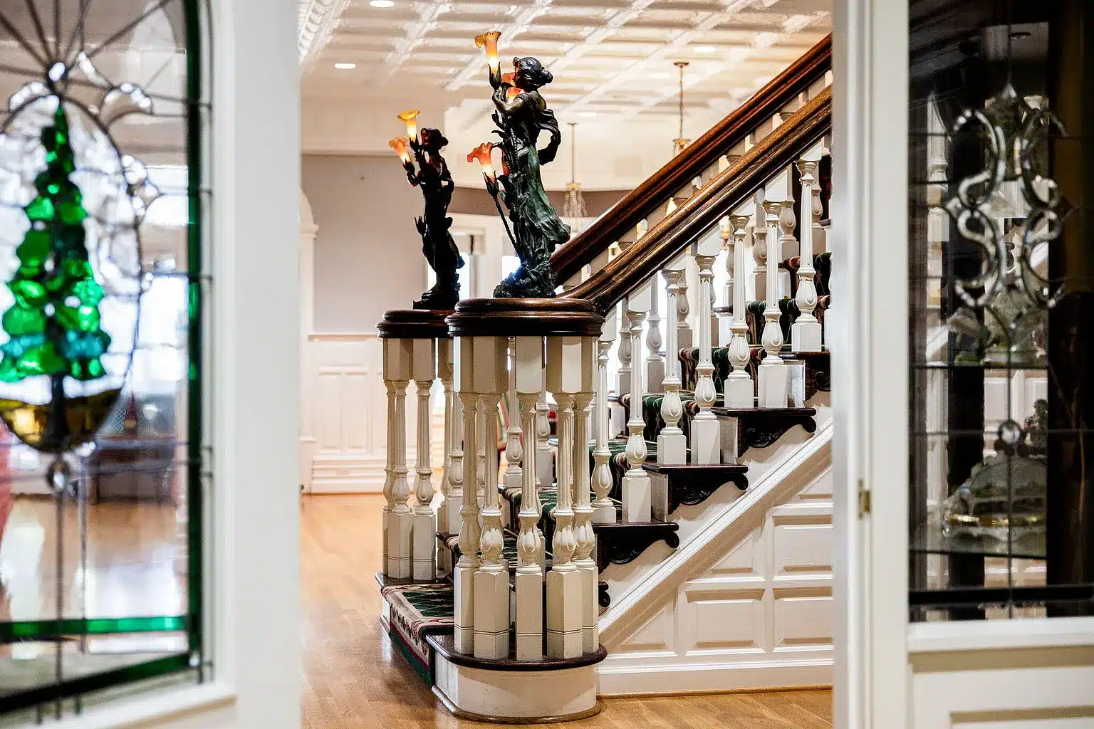 | Interior Detail | Hand-Carved Millwork & Rare Bird’s-eye Maple Paneling |