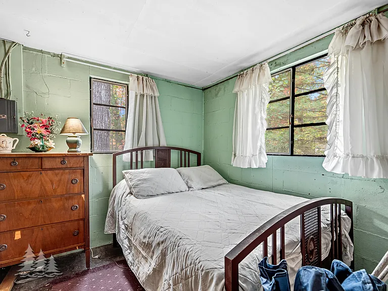 The cabin itself measures approximately 22 by 24 feet and sits gracefully across two expansive 200-by-400-foot lots, giving you a wide canvas to expand, landscape, or simply enjoy the feeling of space and privacy. Inside, the home retains the authentic character that made it special — simple lines, intimate rooms, and a warm, welcoming atmosphere — while offering the flexibility to update it to modern tastes. The bathroom has already been started, with the plumbing and shower components installed, so the essential infrastructure is in place; only the final finishes remain to be chosen by you.