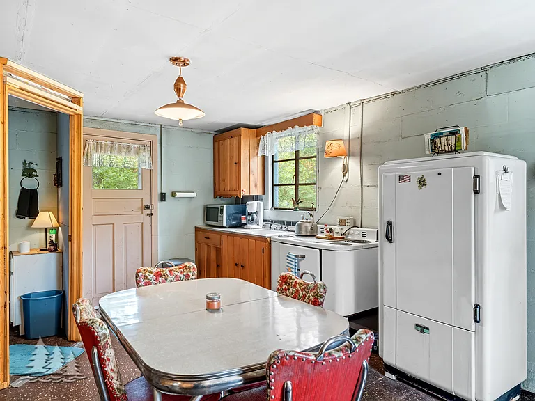 Outside, mature trees provide shade and a beautiful natural backdrop, framing the property with tranquility and seclusion. The gently rolling land invites gardens, outdoor seating areas, or even small additions to the existing structure. Whether you’re envisioning a faithful restoration of a beloved family retreat, a fresh redesign to suit contemporary living, or a combination of both, this property offers a rare blend of heritage, charm, and opportunity.