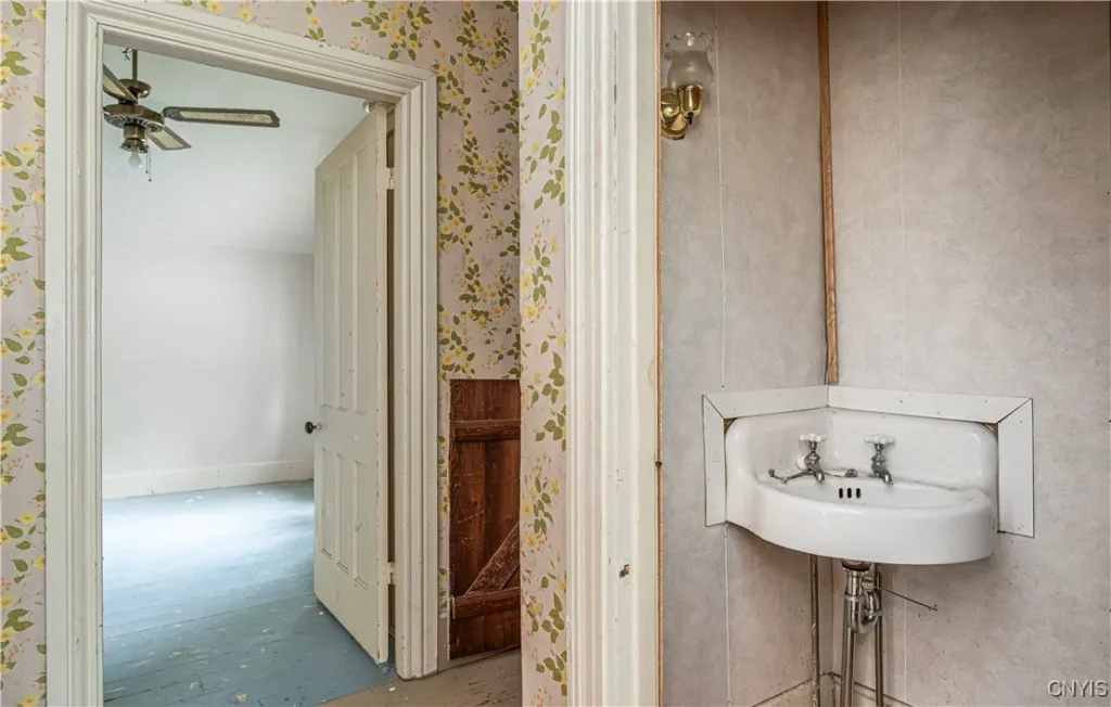 Inside, the home proudly showcases its original architectural details, including original wood flooring upstairs, a grand foyer, custom crown moldings throughout, and original wooden doors that once separated the formal living room from the family room. These historic elements provide a strong foundation for restoration while allowing room to thoughtfully modernize and reimagine the layout to suit today’s lifestyle.