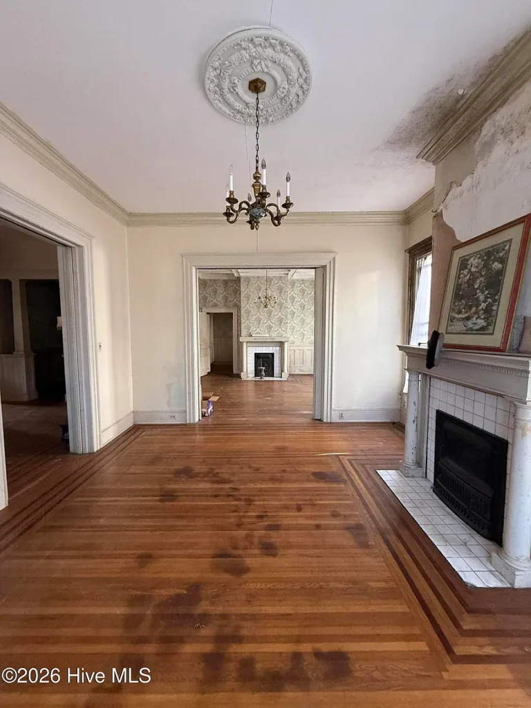 It is currently a shell waiting for a steward with the resources and vision to execute a comprehensive restoration. The “as-is” condition reflects the magnitude of the project, but for those committed to historic preservation, the provenance and location near Tarboro’s 1760 Town Common (one of only two original town commons in the U.S.) justify the effort.