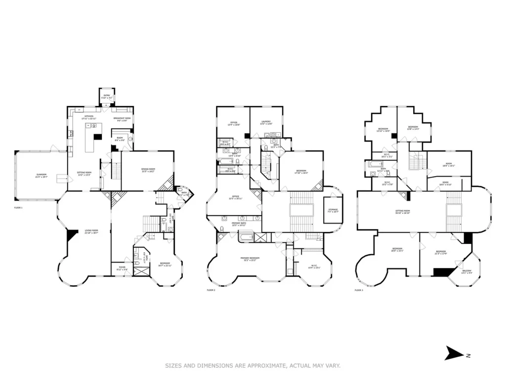 The 8,600 square foot, 18-room mansion welcomes you with a grand entry. It boasts high ceilings, detailed millwork, large windows flooding the home with natural light, and three functional staircases.