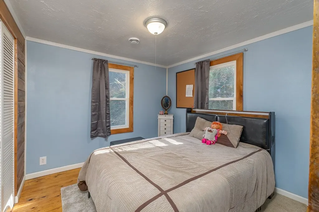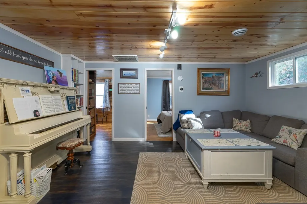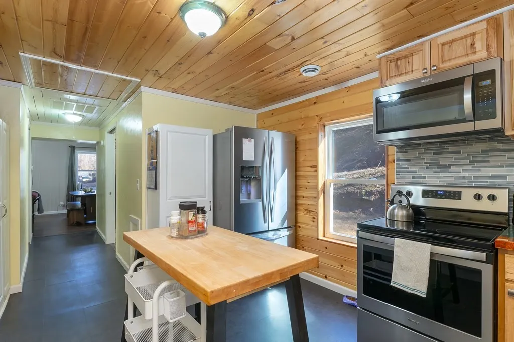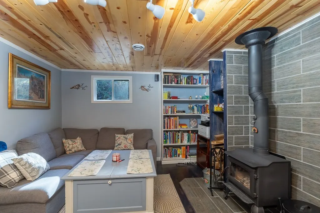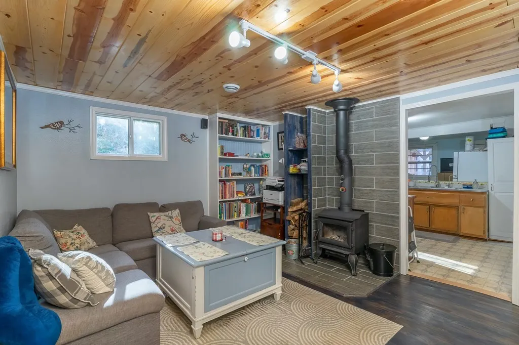 Modern Comfort: Updated plumbing/mechanicals, central heat/air, and a cozy living room with a wood stove and built-ins.