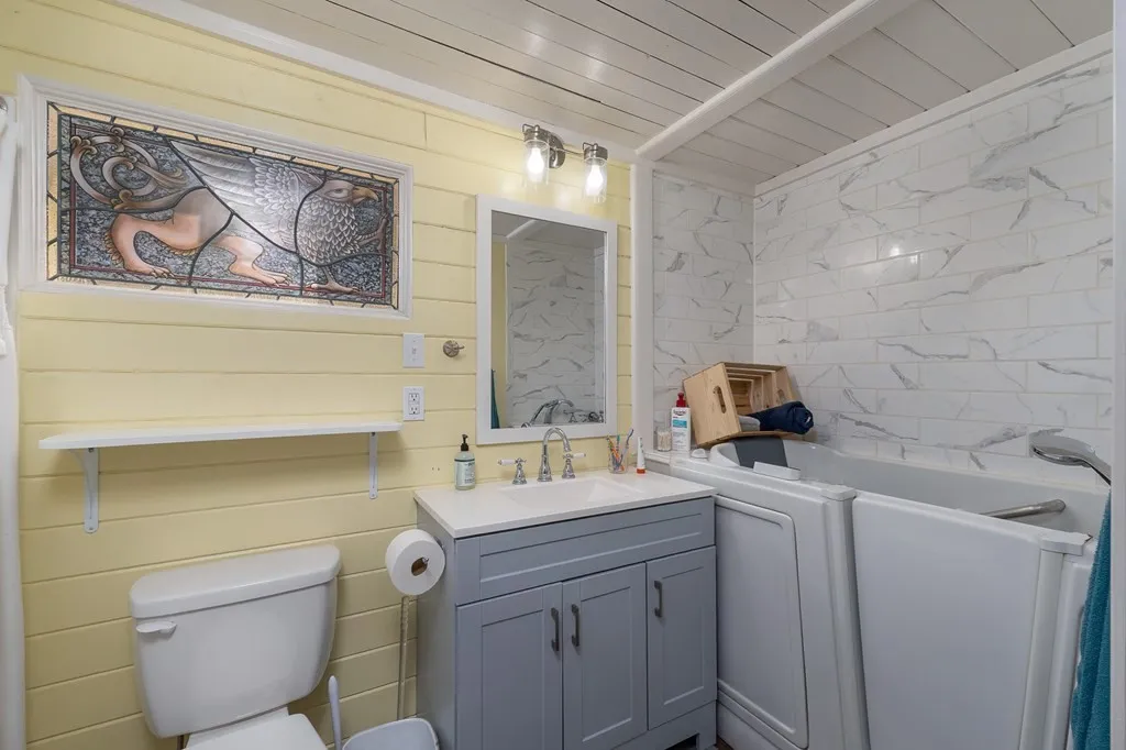 🛁 Spacious bath with adjacent laundry area