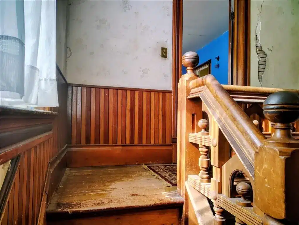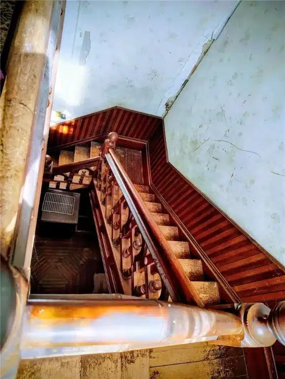 Structural Integrity: Some rooms are stripped to the original raw studs, revealing the “hardy true 2×4” timber framing that defines the strength of 1880s construction.