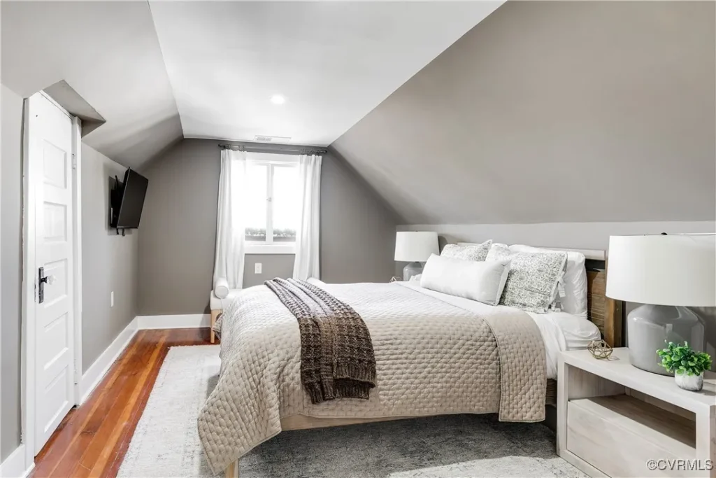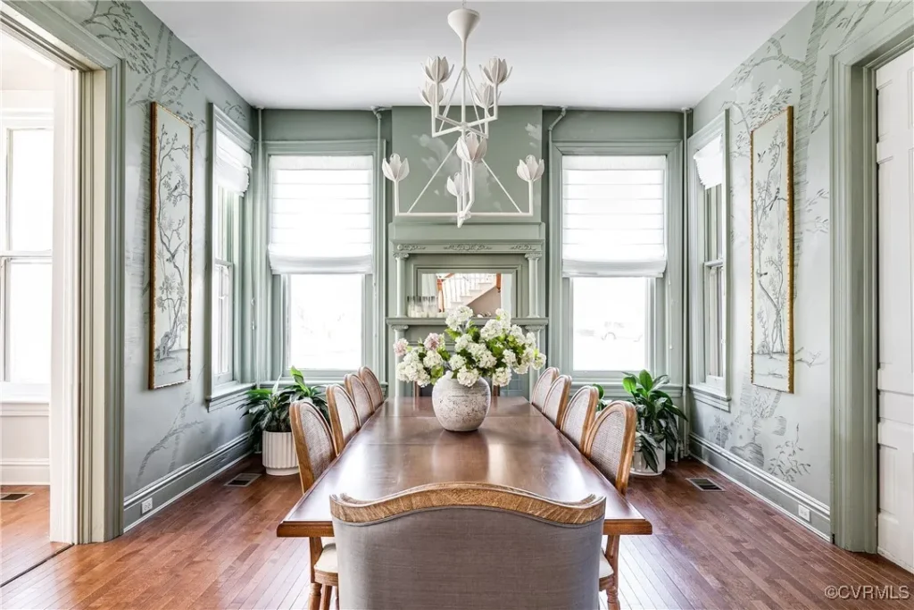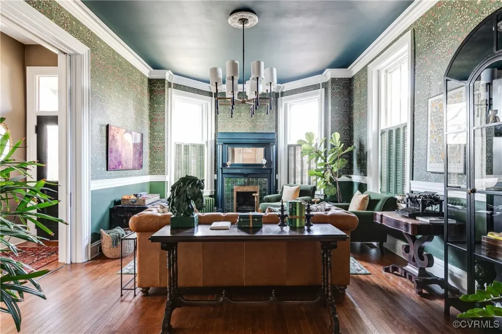 Known as the Grande Dame of Union Hill, this 1925 Queen Anne Victorian is a crowning landmark of Richmond’s historic East End. Occupying a prominent corner overlooking Jefferson Park, the home offers what is widely considered the best vantage point in the city for watching the sunset over the Richmond skyline.