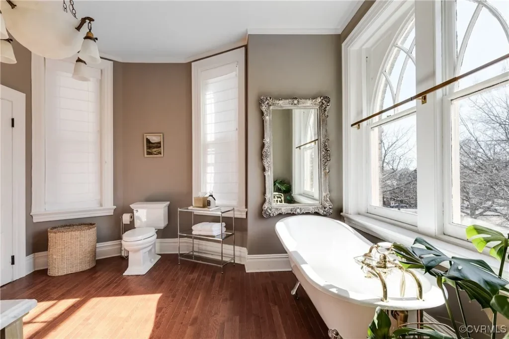 2nd Floor: Primary retreat with a massive walk-in closet and a classic clawfoot tub.